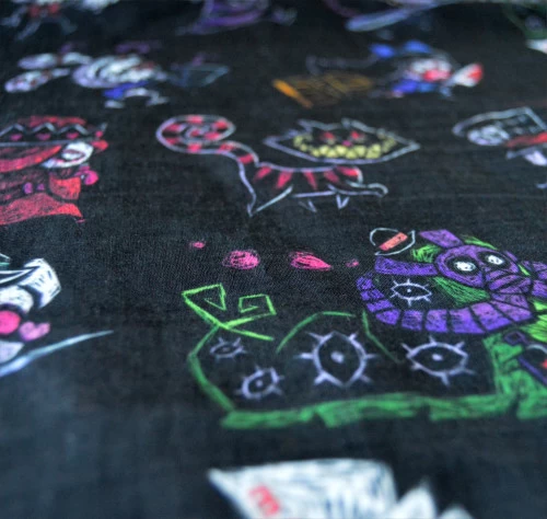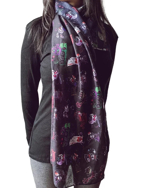 Silky soft and sheer scarf, featuring Akumu Ink’s original designs of the “Escape From Wonderland”.