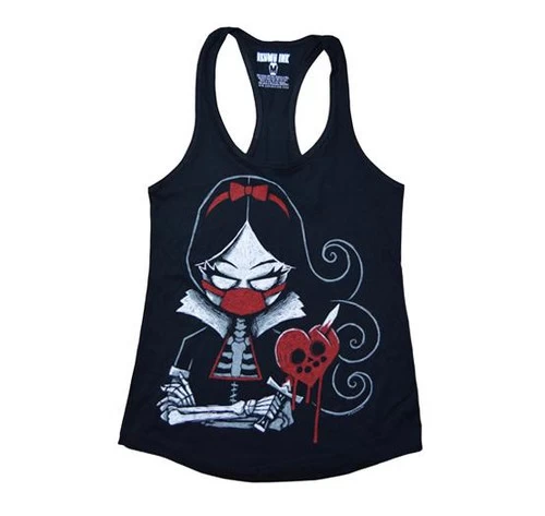 Original hand-drawn artwork of Snow White holding a bloody heart on a knife successfully avenged for her past misfortune.