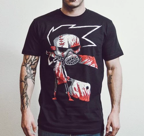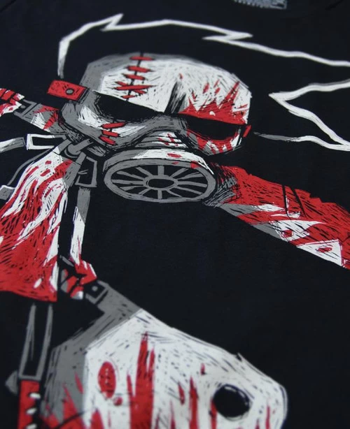 - Unisex black t-shirt featuring original hand-drawn artwork of the evil Butcher, showing off the aftermath of his knife skills.