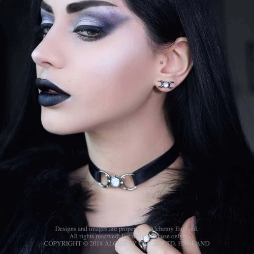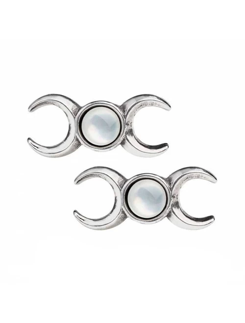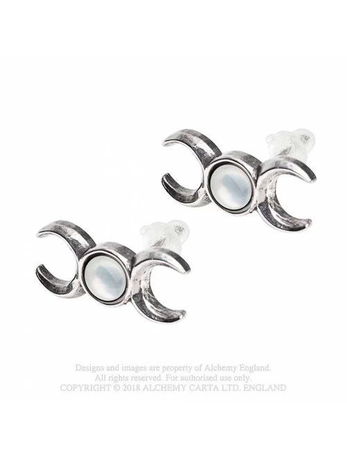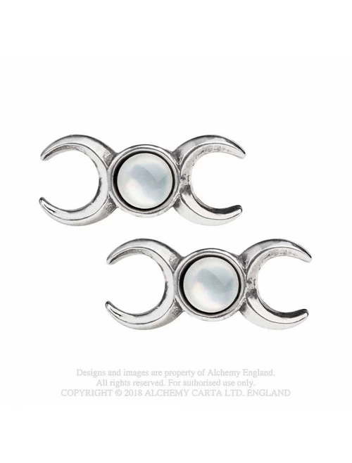 The pearly full moon flanked by the waxing and waning crescents symbolise the Triple Goddess of Wicca; the Maiden, the Mother and the Crone, invoking, amongst other attributes healing, occult protection, perfection and wealth.