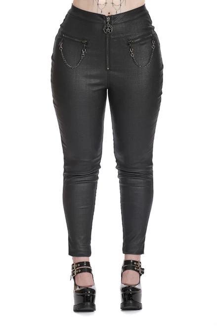 Faux leather look pants on a subtle check background. Stretchy and breathable, these are a dream to wear!