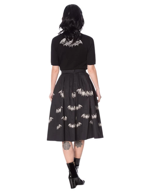 Gathered swing skirt featuring an allover print of adorable lace bats.