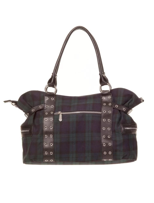 Reinforced adjustable detachable shoulder strap made from faux leather and black carry handle.