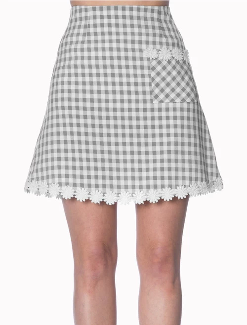 Be a flower child with this 60s inspired a-line checked mini skirt.