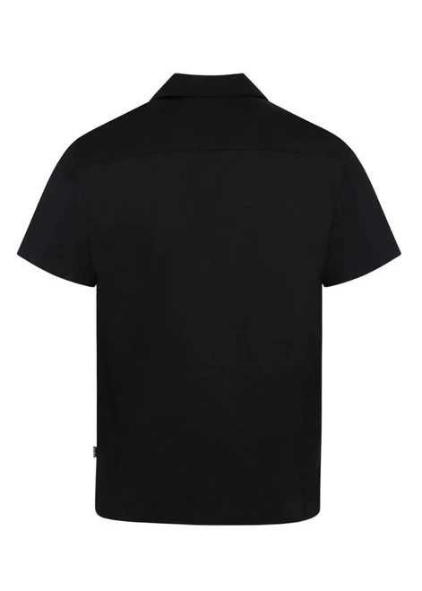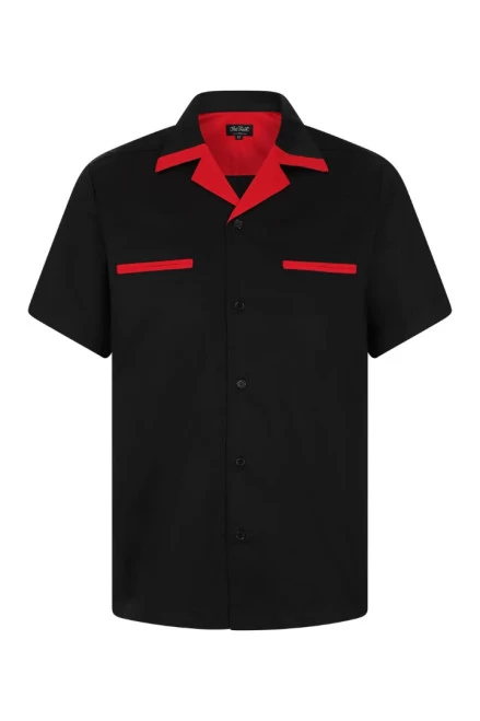 A classic black vintage styled Bowling shirt with two front pipe pockets and short sleeves.