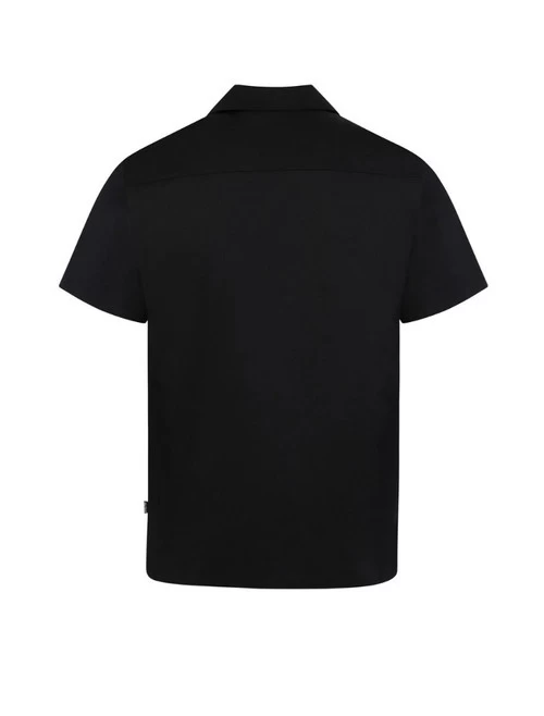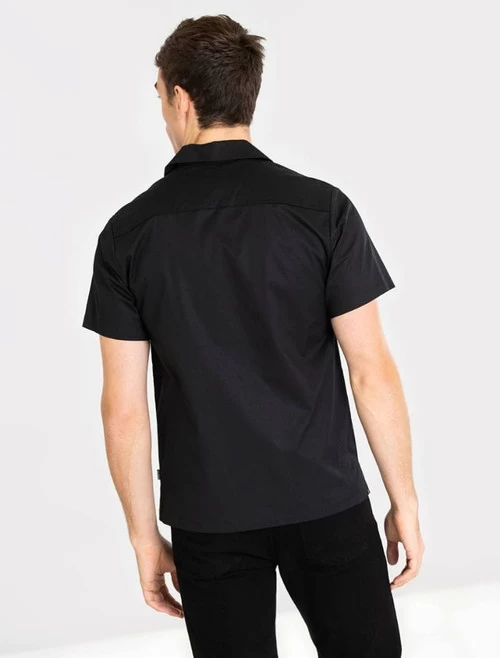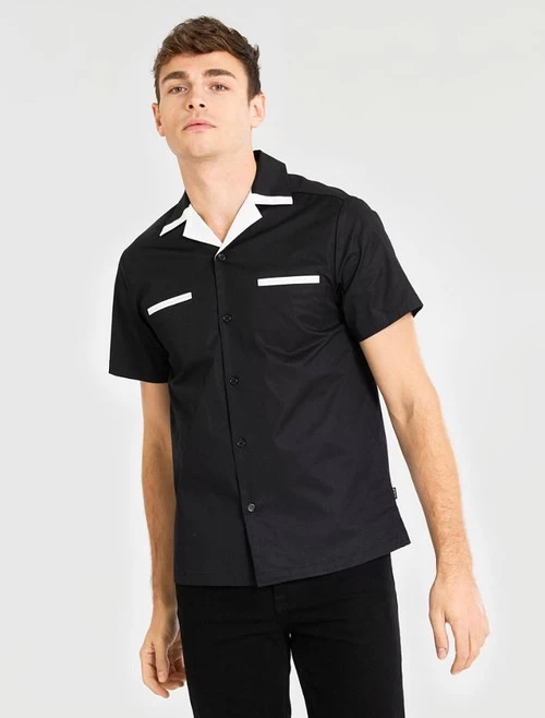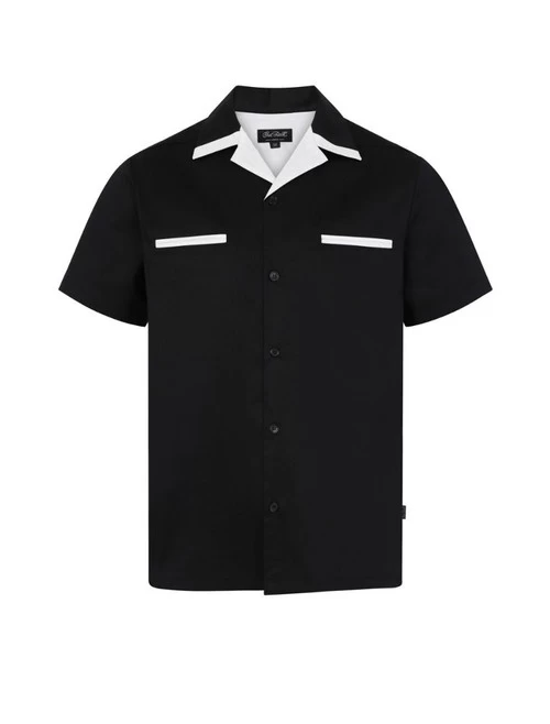 A classic black vintage styled Bowling shirt with two front pipe pockets and short sleeves.