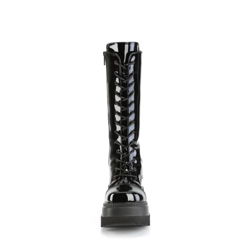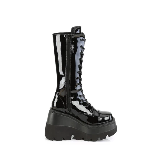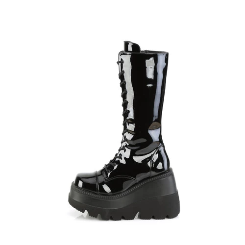 Tall, dark and sexy, these mid calf boots land a tad higher than the ankle Shaker boots, with a vegan patent leather finish that is oh so shiny!