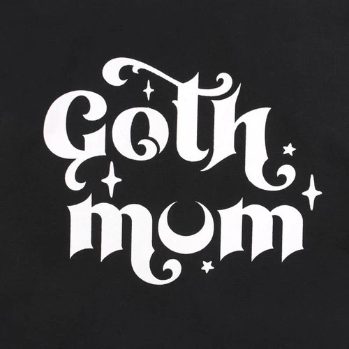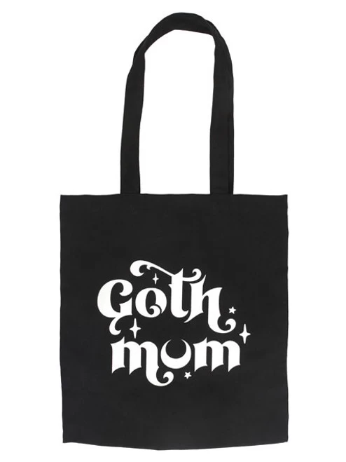Carry your mum essentials everywhere you go with this black canvas tote bag with spooky ‘Goth Mum’ text.