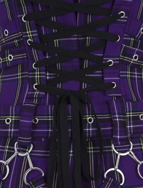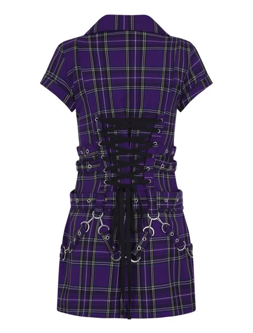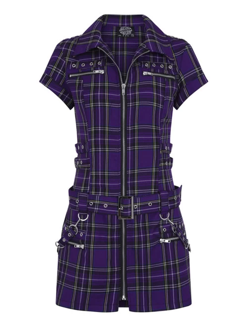 Be bold and daring in this beautiful gothic dress! This dress has short sleeves and traditional fold over collar. A durable metal zipper runs down entire length of dress and it comes with a removable belt with buckle metal at waist. This super-sexy stunner features extra zippers, bondage straps and metal grommets to complete the look. Detailed with; eyelets, zipped pockets, side straps, adjustable cord lacing at the back and bondage straps to give the perfect fit.