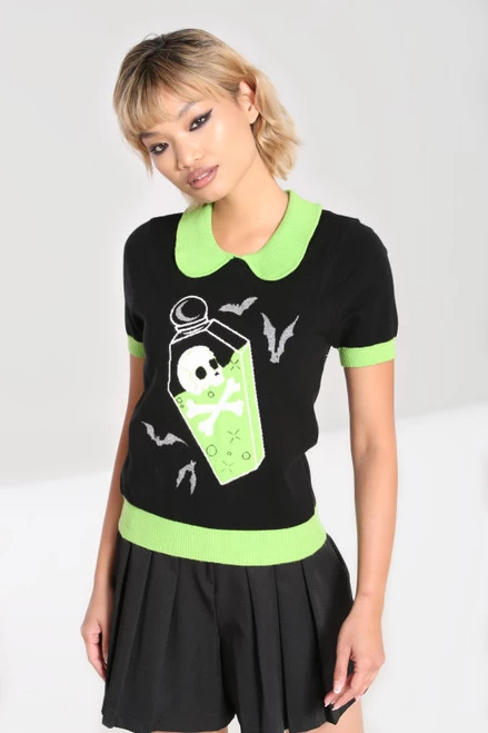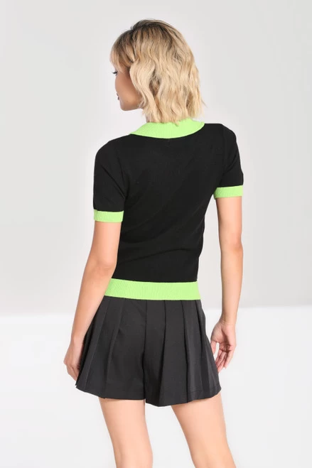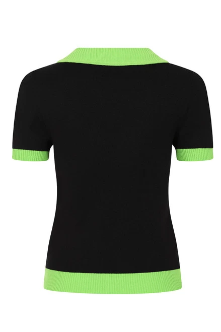 - Contrasting green rib on collar, keyhole, cuffs & hem
