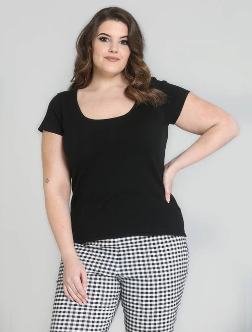 - Scooped neck.