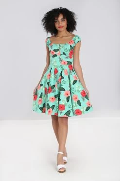 - Coral tropical flowers artwork on a mint green background
