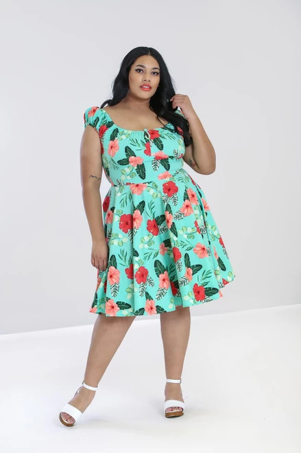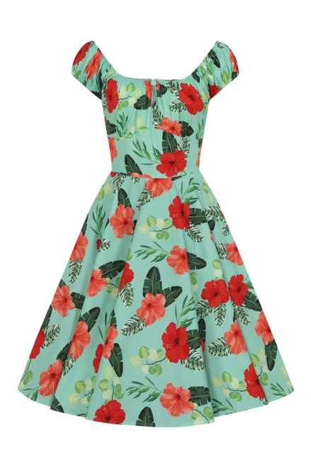 - Fitted bodice with flared skirt at waist