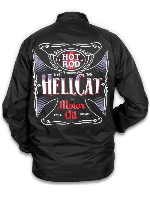 Don’t let a little rain get in your way, rock out in Hotrod Hellcat’s waterproof jackets! It features a back print of a classic oil can-themed Hotrod Hellcat logo and the front features an embroidered patch sewn on the chest. It does up the front with Hotrod Hellcat-branded snap buttons, cuz who the heck has time for regular buttons?