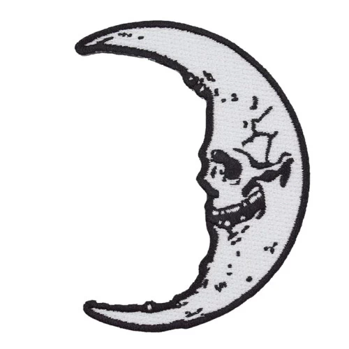 Kreepsville 666 Skull Crescent Moon embroidered iron on patch.