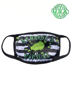 - These non-medical face coverings are made from double-layered cotton fabric, and are both washable and re-usable. Brought to you in typical Kreepsville fashion, this face mask features a print of a green beetle on a black and white stripe background. The mask is held in place by cotton bands fit comfortably over the ears.