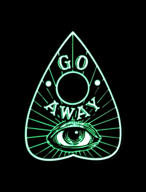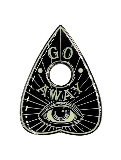 Kreepsville 666 ouija planchette enamel pin badge, gloss finish with eerie glow in the dark effect.