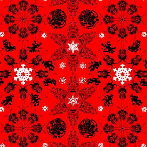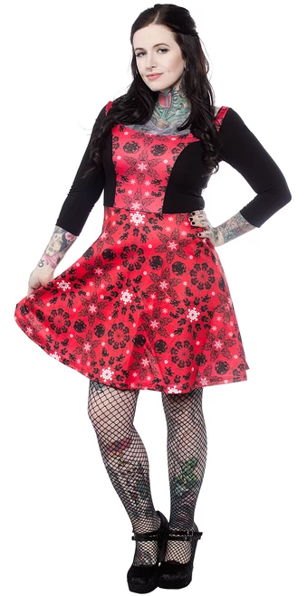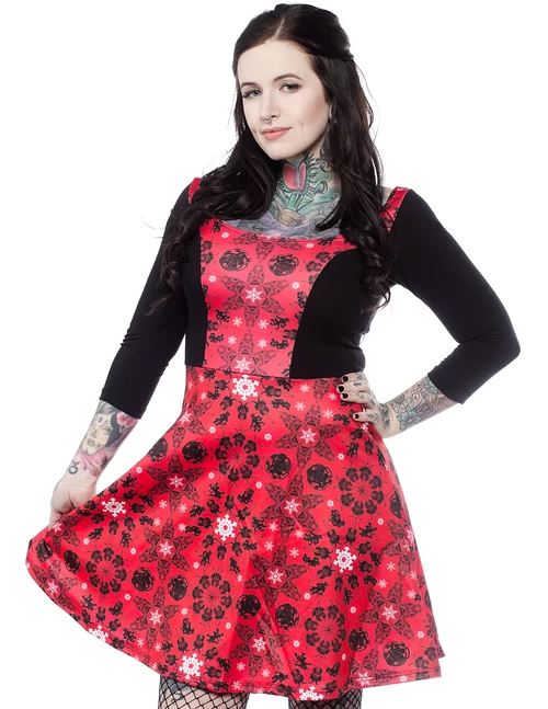 Kreespville 666 Krampus xmas print flare dress,skater style flared dress with 3/4 sleeve detail.