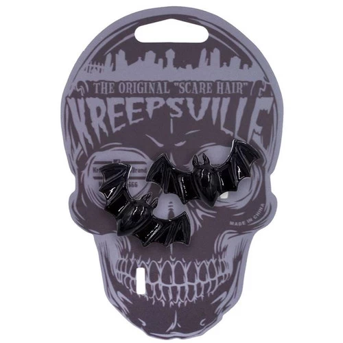 Kreepsville 666 Lil Black Bats Hair Slides Pair. Add some batty accents to your hair with our black bat hair slides.