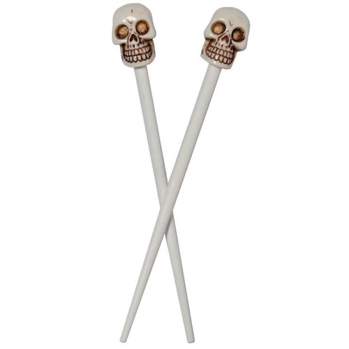 Kreepsville 666 rainbow skull hair stix. Plastic white skull charms on white wooden hair sticks. Full length including skull approx 7.25 in (18 cm)