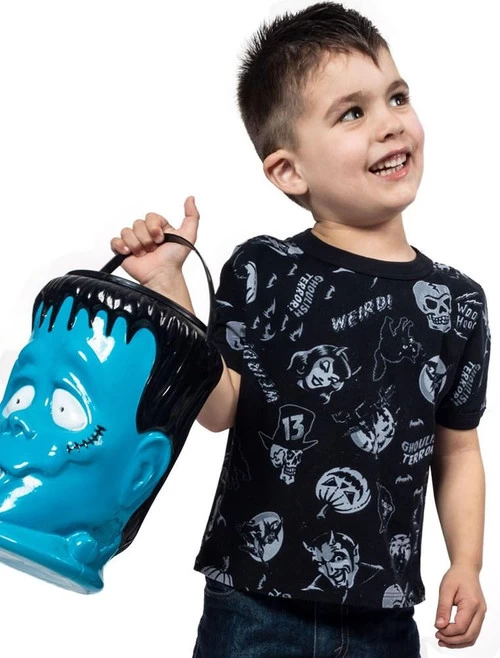 - Something spooky for your little ghouls, Kreepsville 666 Spookshow black ‘n grey ringer toddler tee, with an exclusive all-over Spookshow design by Vince Ray.