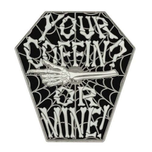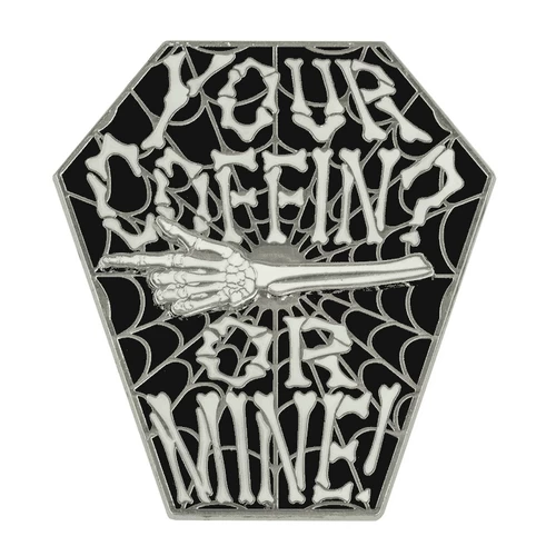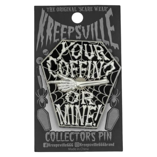 Pick whose crypt you are going to hang at with Kreepsville’s Your Coffin or Mine Spinner Enamel Pin.
