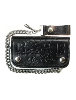 - The DEATH OR GLORY wallet is a 6″ genuine leather wallet with a black finish, embossed with Luck 13’s “Death or Glory” skull-and-top-hat logo. The wallet comes complete with a chain and leather clasp and is made right here in Southern California. Because of this custom hand painted process, no two wallets are identical.