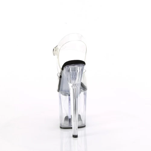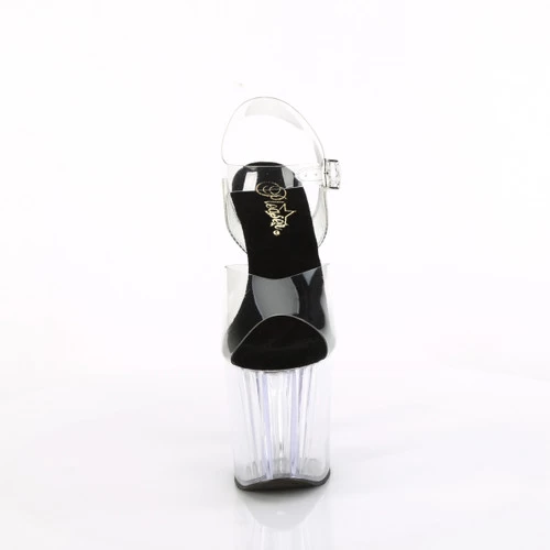 8″ (195mm) Heel, 3 3/4″ (95mm) Platform Ankle Strap Sandal Featuring Prismatic Linear Design at the Platform Front and Back of Heel