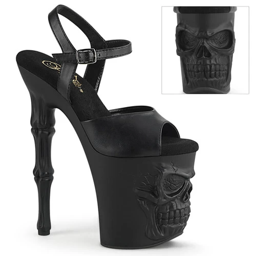8″ (200mm) Finger Bone Heel, 4″ (100mm) Platform Ankle Strap Sandal Featuring Skull & Bones Platform Bottom