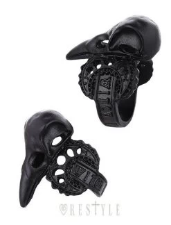 This stunning ring from Restyle features a 3D crow skull in the centre of the ring, held up on either side by a crescent which features the phases of the moon displayed in negative space. The band of the ring is inscribed with the word “WITCH” on either side. The ring is presented in a deep matte black colour.