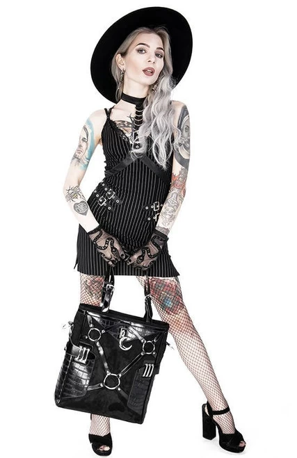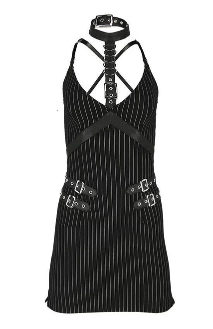 The Collared Pinstriped Mini dress is a Gothic classic that will never go out of fashion. We decided to pimp it up a bit, adding strong elements that slightly refer to the punk style. However, this is still our beloved gothic style.