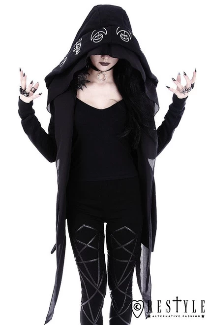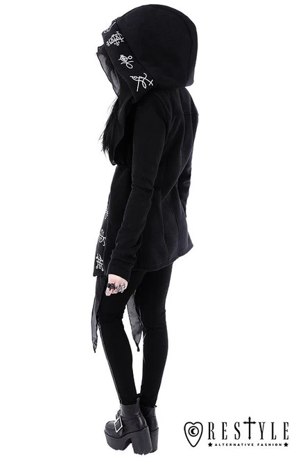 The long front has a veil sewn underneath which adds an extra level of mystery to the design. This gothic hoodie can be laced up at the waist or can just hang loose if you want a more casual look.