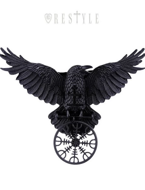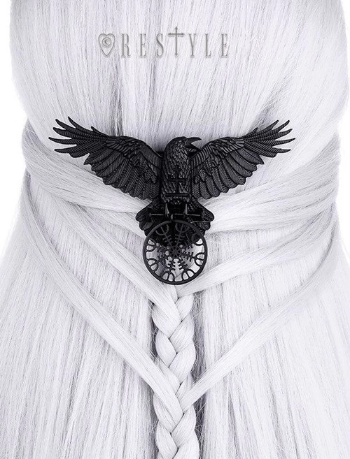 - This beautiful hair clip presents a black crow with a healing rune engraved on its body. In its claws it holds Aegishjalmur, the “Helm of Awe” protective rune.