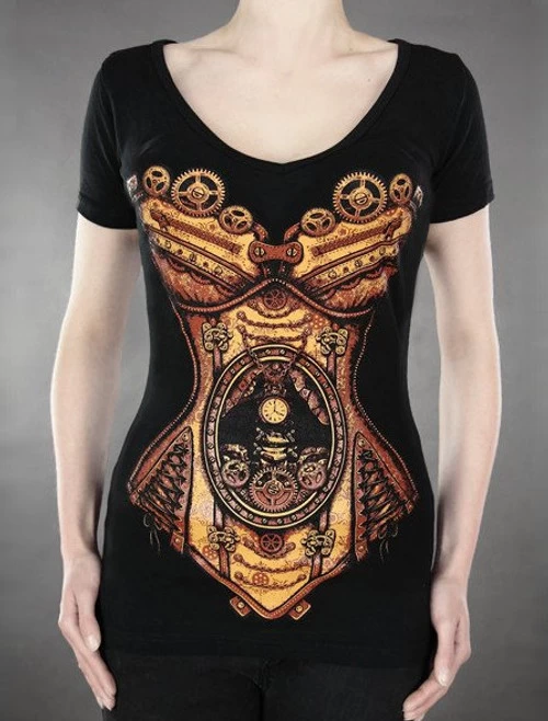 - Get some casual steampunk styling with Restyle’s Mechanical Skeleton Corset tee, featuring a front print of a steampunk corset with a centre cameo revealing a mechanical skeleton beneath.