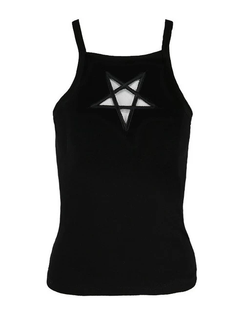 Black gothic top featuring a mesh pentagram on the bust, giving a design that is both classic and unique at the same time.