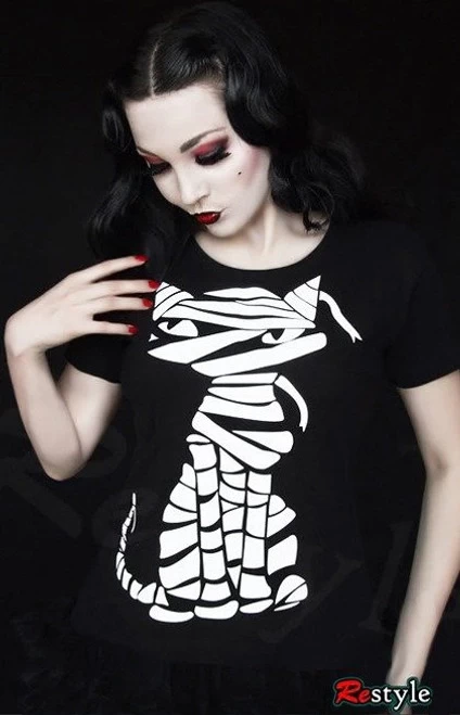 - This adorable t-shirt from Restyle features a mummy-inspired bandage wrapped kitty, with only her shifty eyes peeking out.