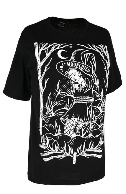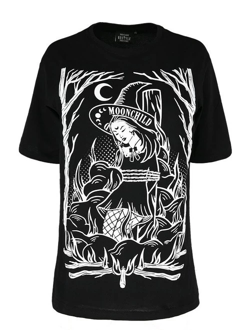 - The Burn The Witch T-Shirt from Restyle shows a print of a fashionably-dressed witch tied to a stake. The witch is relaxed; it seems as if she isn’t worried that she will end her life burned at the stake. Smoking her last cigarette, she remembers the magical life she led.