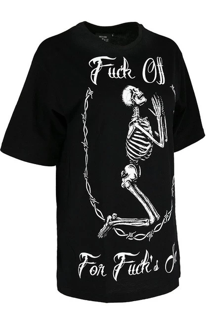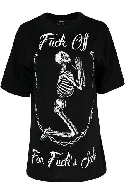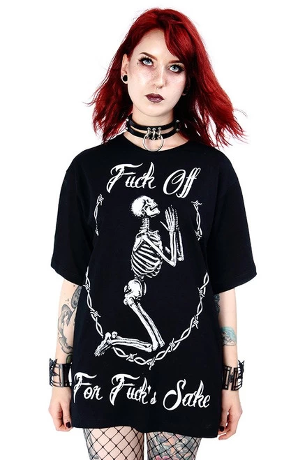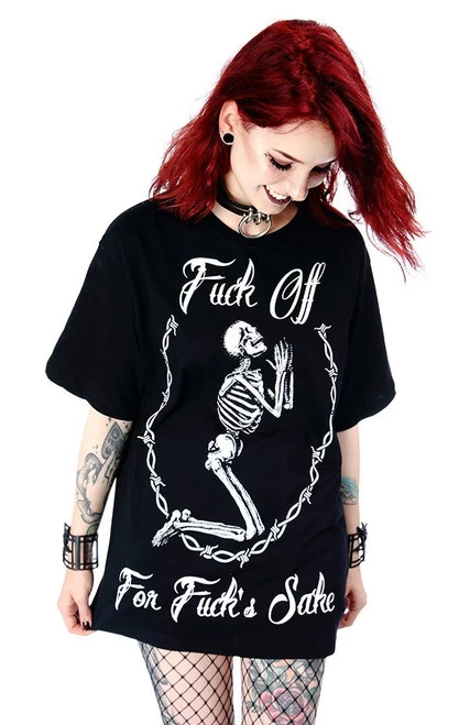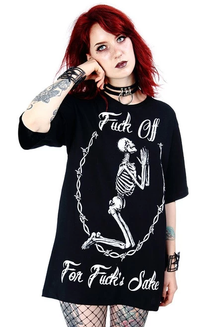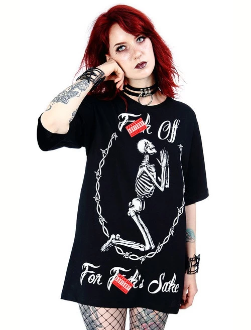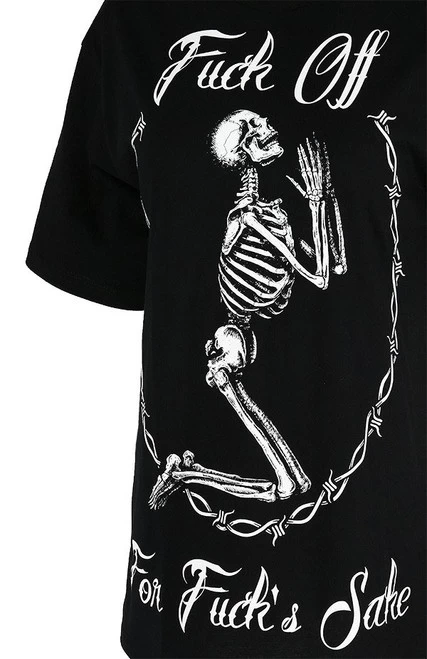 The desperate prayer of a kneeling skeleton, who prays in strong words for his peace of mind. We are sure that sometimes you are in the same state, when you are fed up with everything and everyone; this t-shirt should solve some of your problems 😉