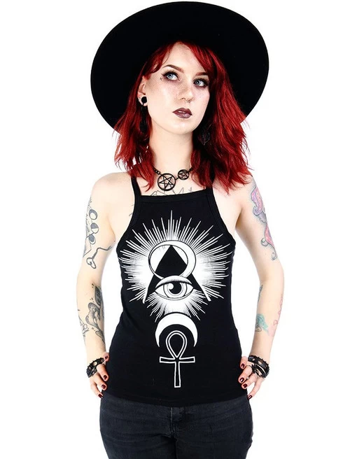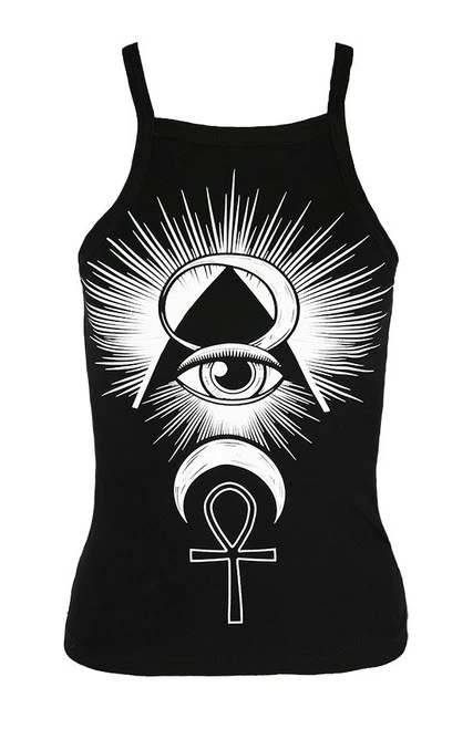 The third eye closed in a pyramid is called the “Eye of Providence”. It has many meanings. To some it symbolises God itself and it is also used as the Illuminati symbol in many conspiracy theories. The ankh cross is the Egyptian cross of life, connected in balance between feminine and masculine energy in everyone’s life. The crescent moon connects both symbols aesthetically, making a nice and unique t-shirt design which is perfect for every person interested in spirituality, even conspiracy theories, or even if you just find those kind of symbols nice to look at!