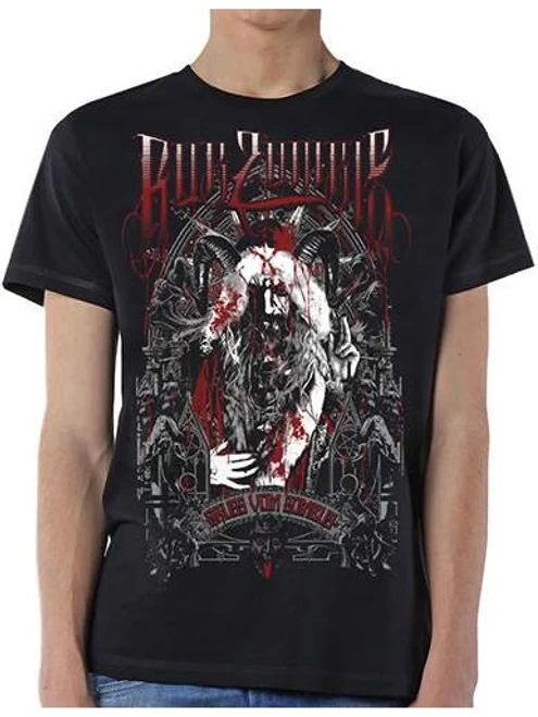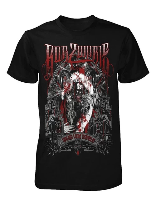 Black unisex t-shirt featuring a front print of Rob Zombie as Krampus.