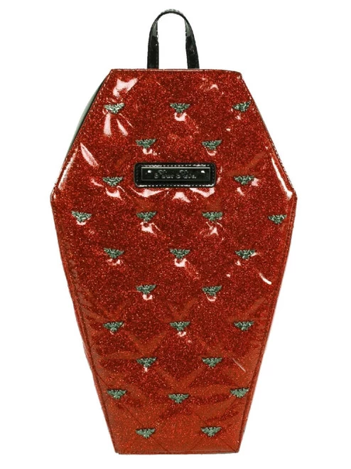 Rock Rebel Mina Quilted Bat Coffin Backpack: Red