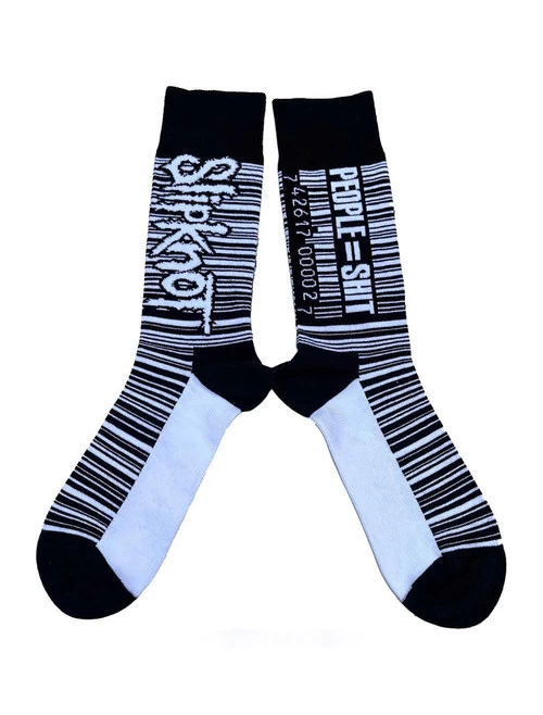 Black and white knitted socks featuring the Slipknot Barcode design.