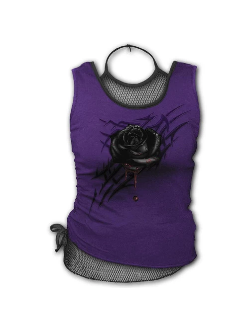 Spiral Black Rose Dew 2 In 1 Mesh Neck Tank
