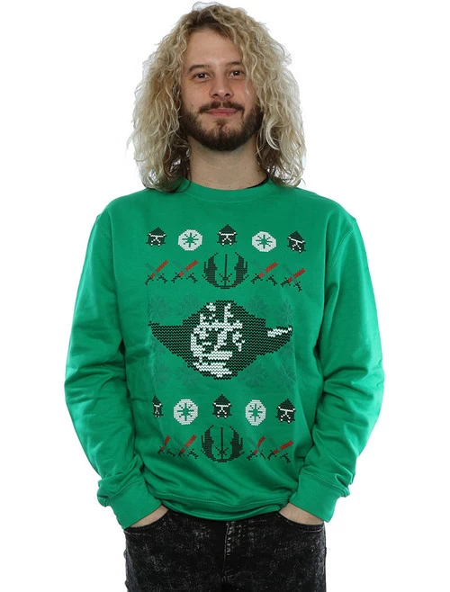 - An officially licensed men’s sweatshirt featuring the Star Wars ‘Christmas Yoda Fair Isle’ design motif.