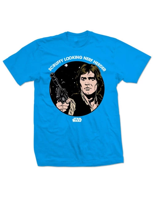 - Light blue unisex t-shirt featuring a cartoon Han Solo and his most favourite of nicknames (what the heck is a nerf anyway?)