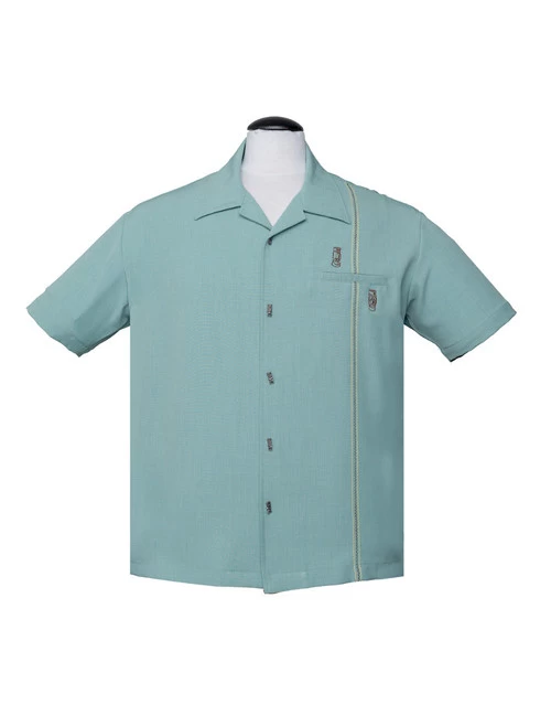 Steady Tiki Stitch Bowling Shirt: Light Teal – 3XL
