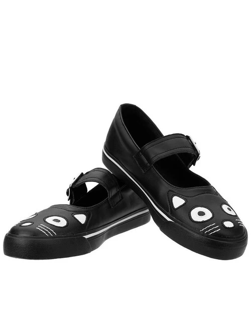 - TUK’s beloved kitty face Mary Jane gets a refreshing update in vulcanised sneaker form! These charming shoes feature the classic black kitty face with tail at the heel and is now combined with a more streamlined and sleek look from the VLK collection. In addition to its updated form, these sneakers have removable memory foam insoles for added comfort.