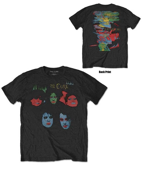 - Black unisex tee featuring front and back prints in the style and colour of The Cure’s hit single “In Between Days”, from their sixth album “The Head on the Door”.