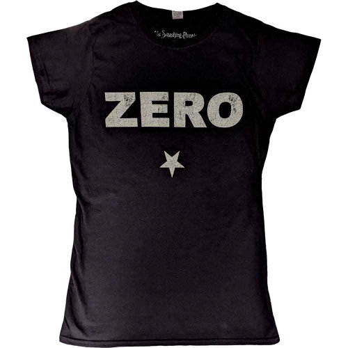 Black Smashing Pumpkins Ladies’ fit Tee featuring the ‘Zero’ distressed design motif.