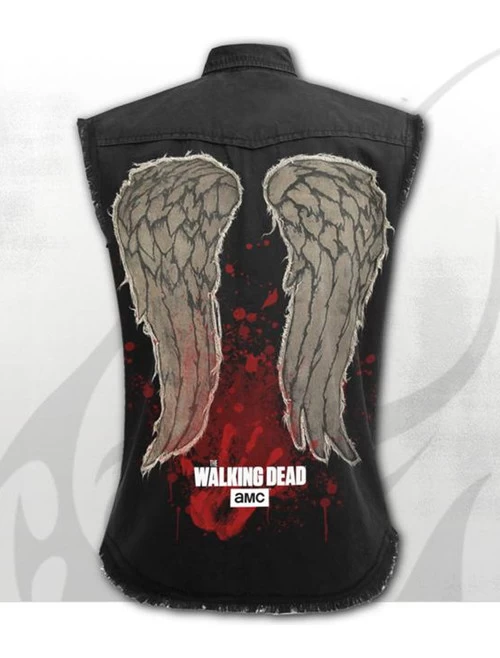 Proudly wear Daryl’s iconic wings emblazoned across the back of your very own sleeveless zombie-killing work-shirt. We even got you started with the first spatters of ‘walker’ blood!